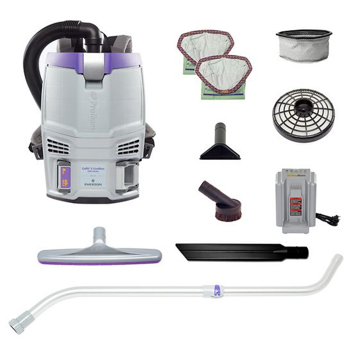 Clean with freedom using ProTeam’s GoFit 3 Cordless backpack vacuum which offers cordless efficiency for a seamless cleaning experience. Cordless vacuuming allows you to safely go wherever you need to go without the constraints of a cord, increasing your productivity by 30% compared to corded backpack vacuums. Weighing in at 15.7 lbs with the 8Ah battery installed, the 3 qt. is the smallest addition to ProTeam’s GoFit Cordless Series, making it an ideal tool for those with smaller frames or new to backpack vacuums. Control the power setting with the high/low power switch and enjoy an extended runtime of approximately 106 minutes on low for daily cleaning and approximately 83 minutes on high for a deeper clean. Feel customized comfort with the 4-step quick-adjust FlexFit harness designed to be easily adjusted with no tools required. This cordless backpack vacuum cleaner has advanced multi-layered ProLevel Filtration with HEPA Media that reduces allergens in the air while a brushless motor prevents carbon dust. Clean hard-to-reach areas with the 3 qt. combined with top-quality ProTeam accessories – the Xover Multi-Surface Telescoping Wand Tool Kit (107100): 42"- 57" two-piece two-bend telescoping wand (107628), 14" Xover floor tool (107016), 17" crevice tool (100108), 3" dust brush (100110), 5" upholstery tool (100115) plus 2 filter bags (107666), 8Ah battery (107684) and charger (107685). 3 year warranty on parts and labor, 2 years on motor, battery and charger. Use filter bags open collar (107666) or closed collar (107667).